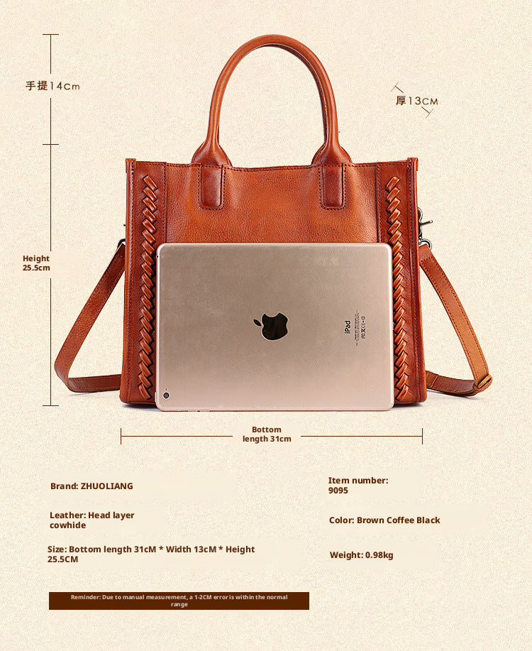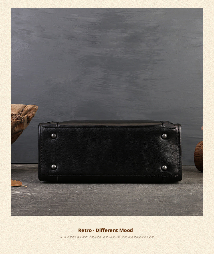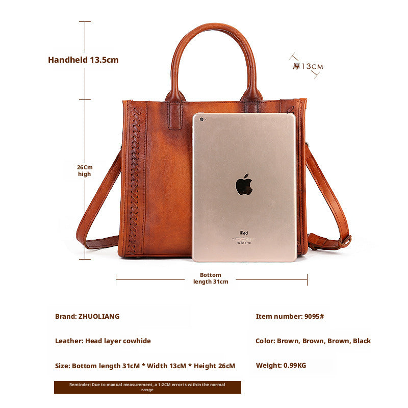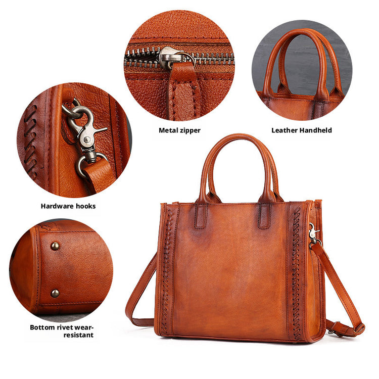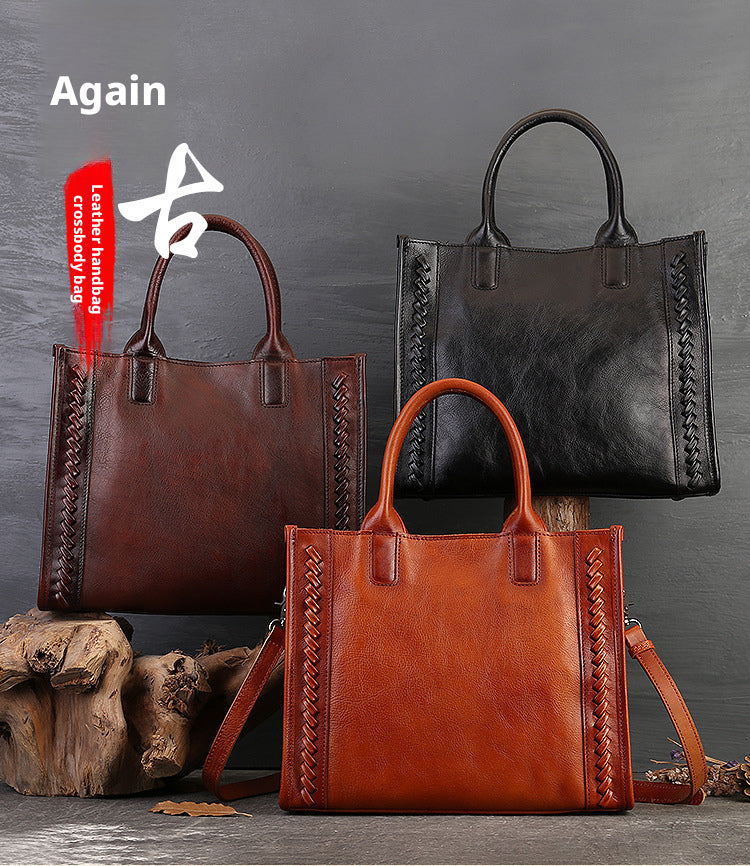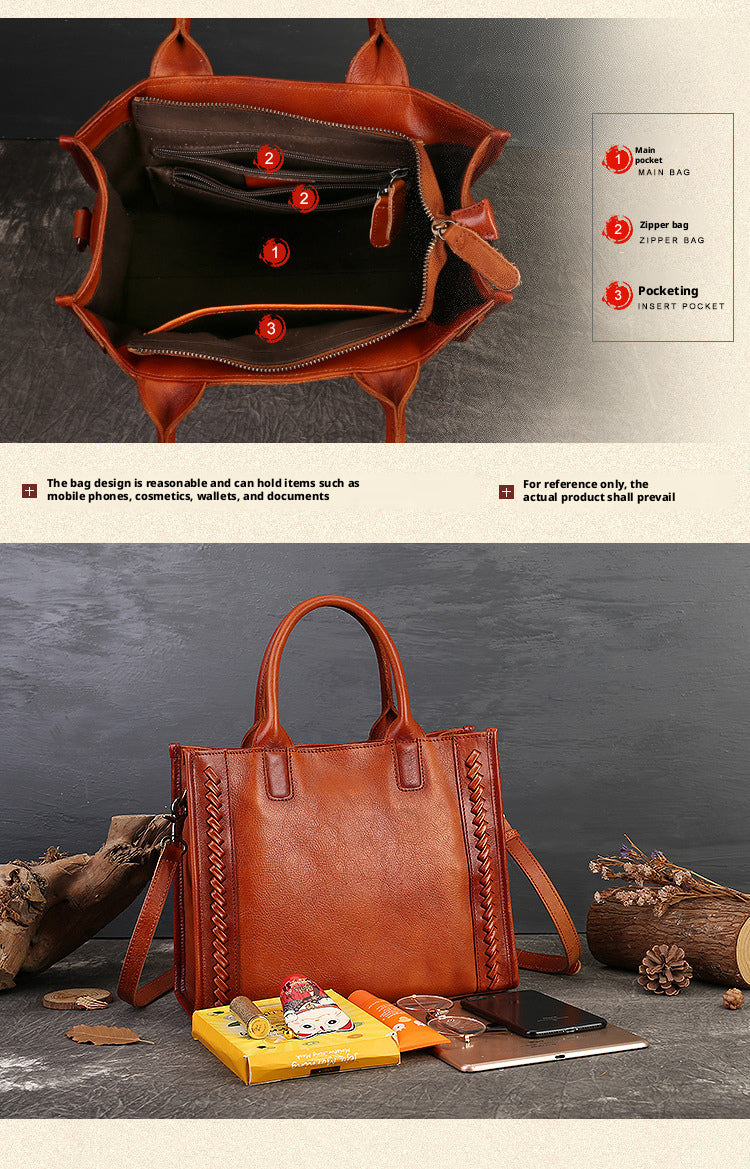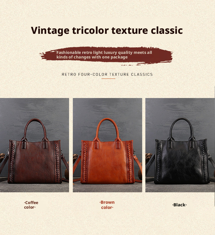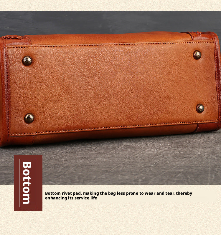 Fashion Versatile Genuine Leather Women's Bag Simple Solid Color Retro Handbag High-end First Layer Cowhide Single Shoulder Crossbody Bag Trendy