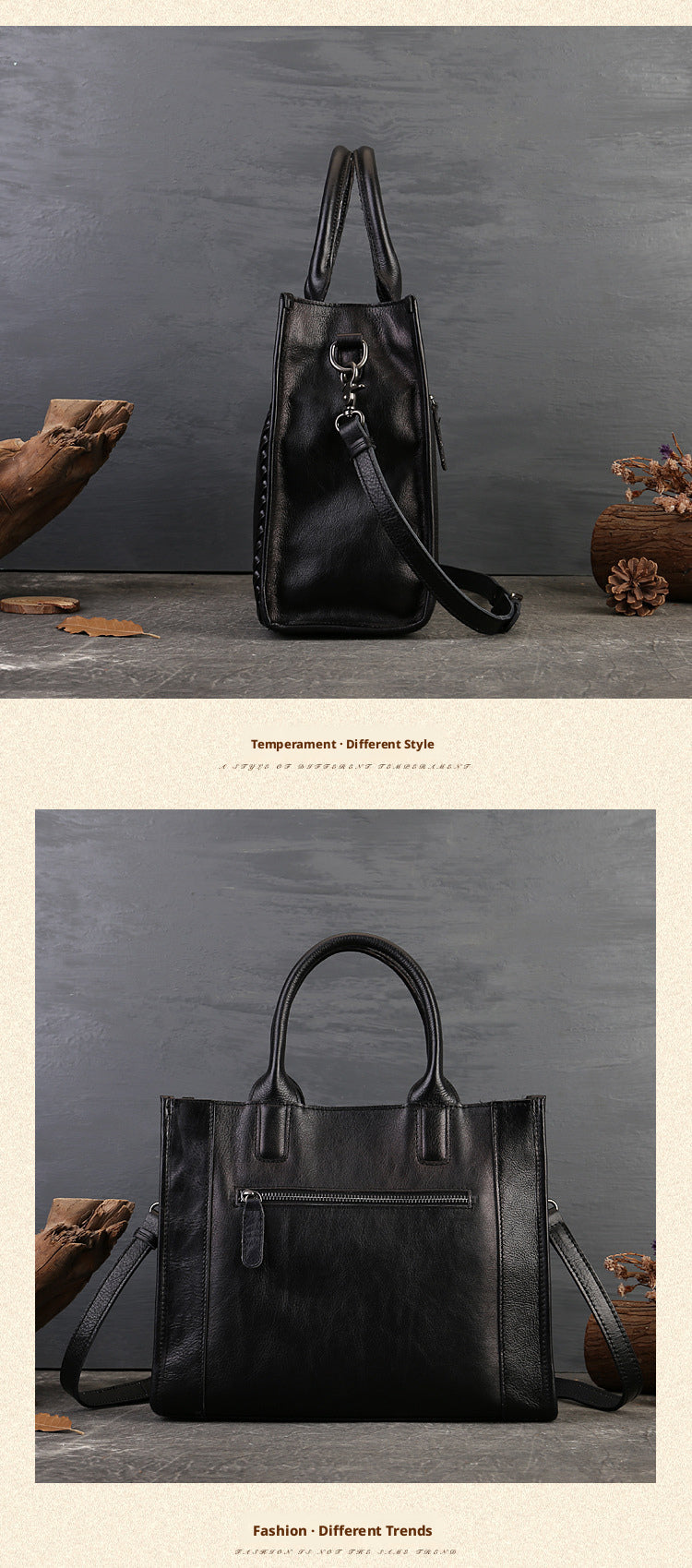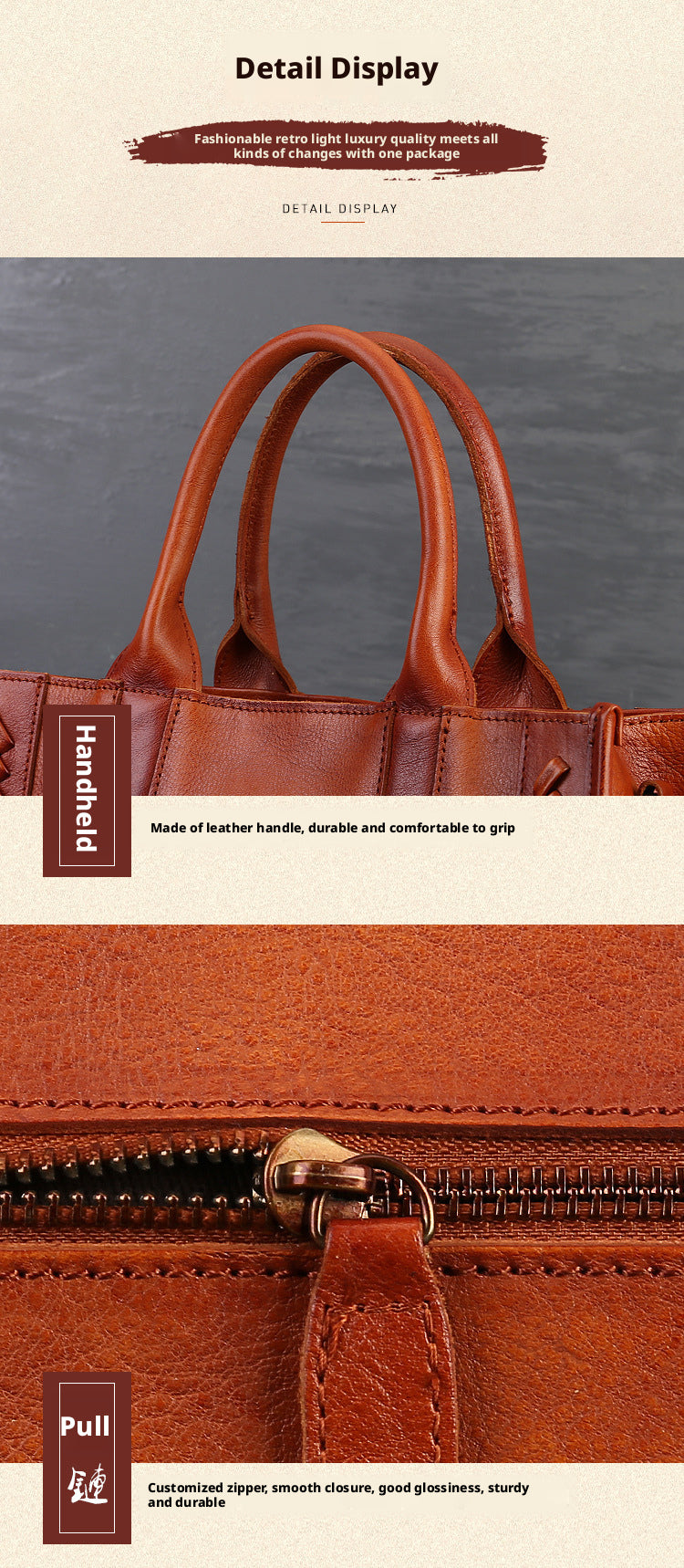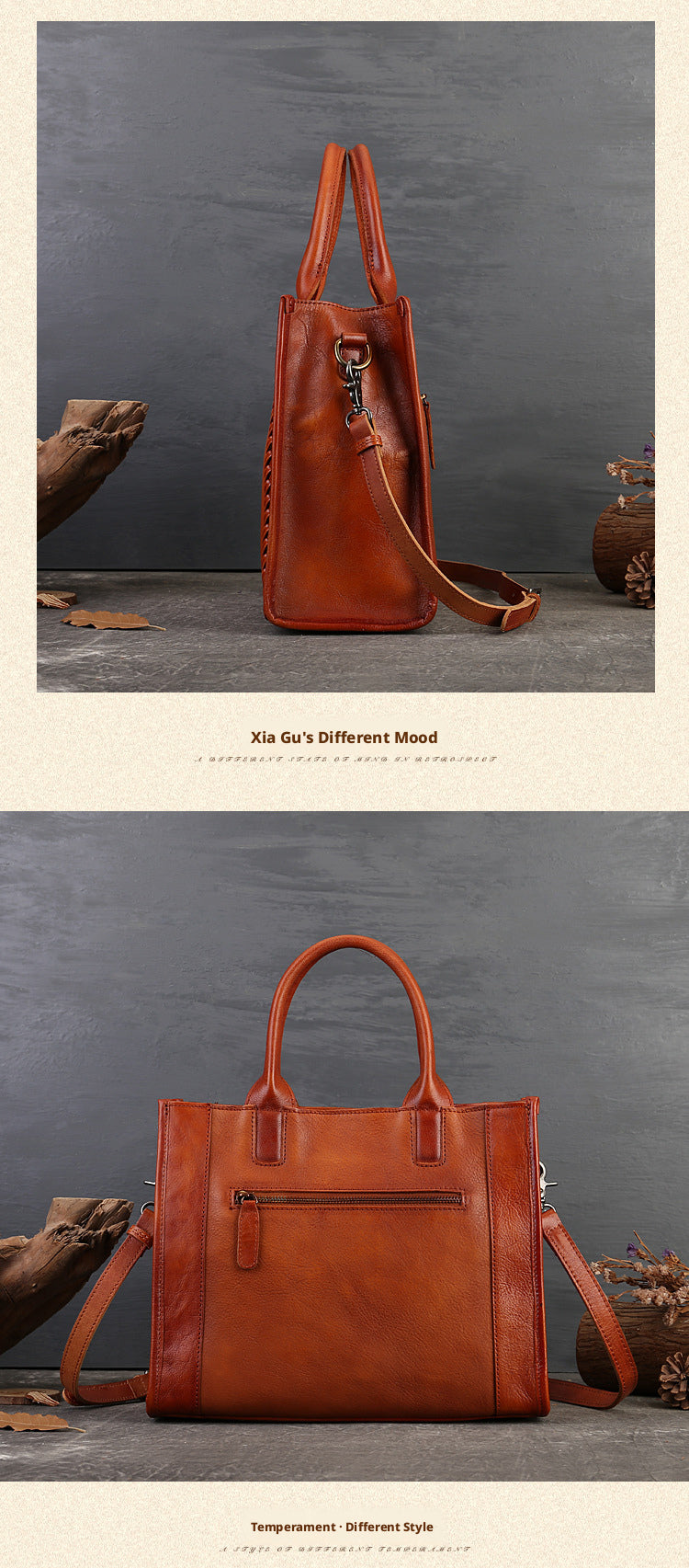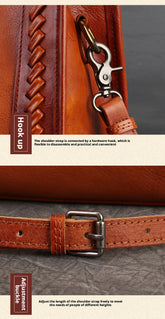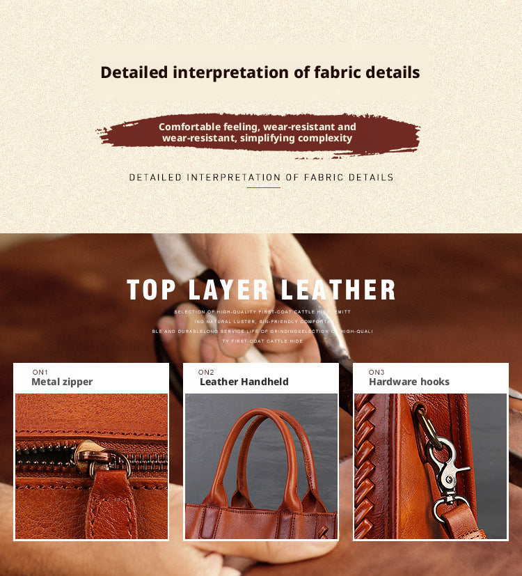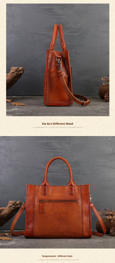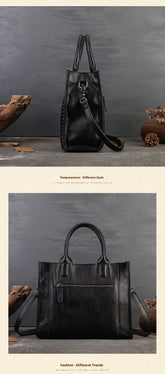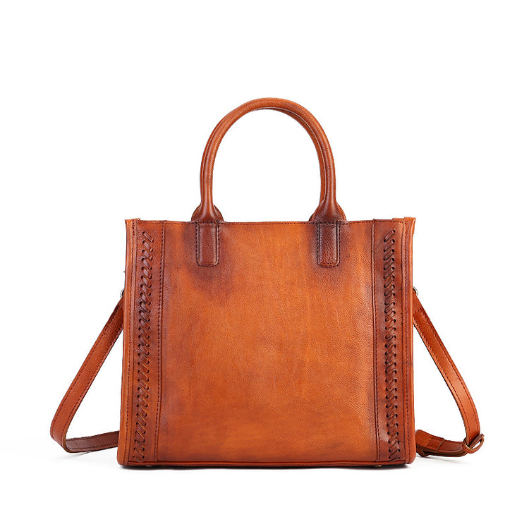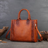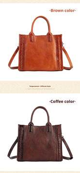 Fashion Versatile Genuine Leather Women's Bag Simple Solid Color Retro Handbag High-end First Layer Cowhide Single Shoulder Crossbody Bag Trendy