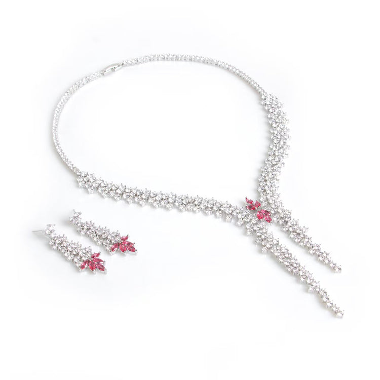 【Zircon Necklace & Earrings Set – Timeless Elegance】