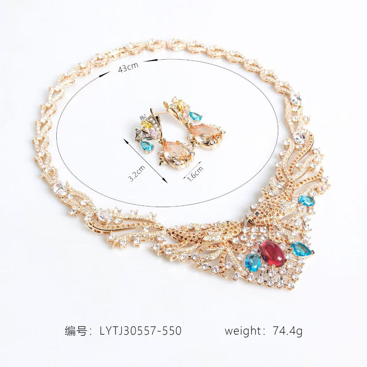 Product Features:• Gorgeous Design: The set features an elaborate pattern adorned with multicolored gemstones, showcasing unparalleled luxury.• Selected Gemstones: Each gemstone is carefully chosen to ensure vibrant color and lasting luster.• Perfect Match: Whether paired with a wedding gown or evening dress, this set perfectly complements your elegant demeanor.• High-Quality Assurance: Made from premium materials to ensure long-lasting brilliance.Suitable Occasions:This wedding jewelry set is an ideal choice for weddings, dinners, balls, and other formal events, making you the center of attention at every significant moment.