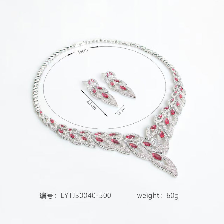 Product Features:• Exquisite Cubic Zirconia: The embedded cubic zirconia sparkles like diamonds, adding a touch of luxury.• Elegant Design: The classic leaf-shaped design with smooth lines outlines an elegant silhouette.• Perfect Match: Suitable for wedding dresses or evening gowns, enhancing the overall look.• High-Quality Assurance: Made from premium materials to ensure long-lasting brilliance.Suitable Occasions:This cubic zirconia bridal jewelry two-piece set is an ideal choice for weddings, dinners, balls, and other formal events, making you the center of attention at every significant moment.