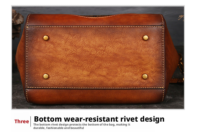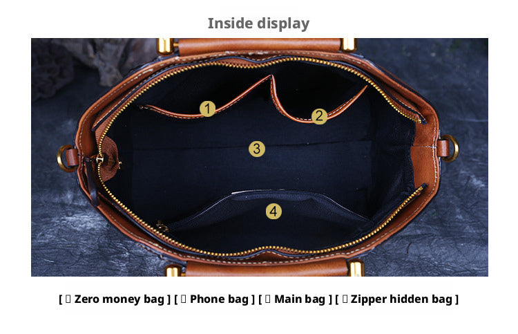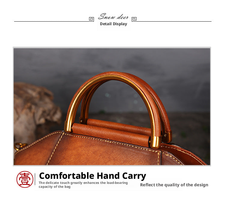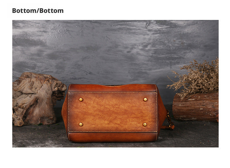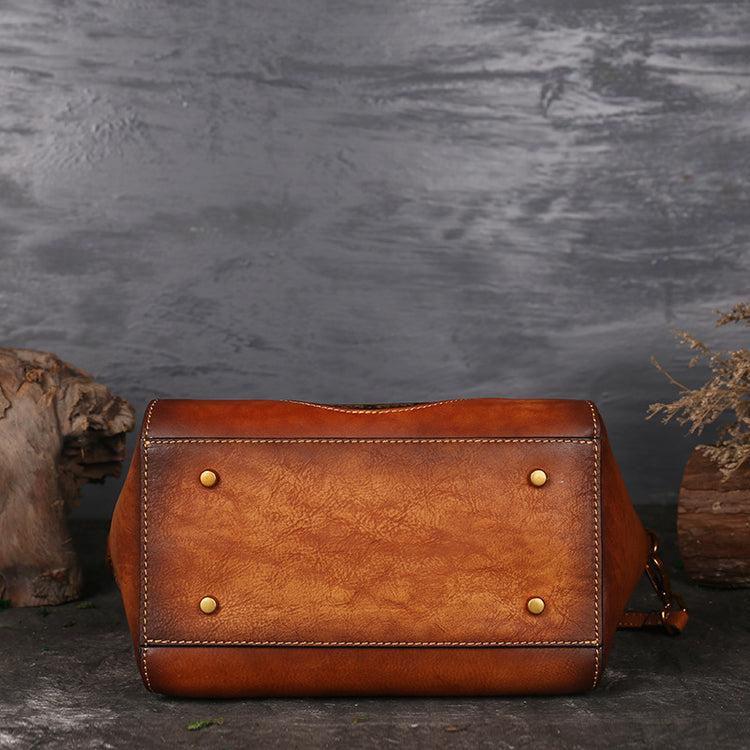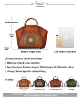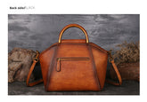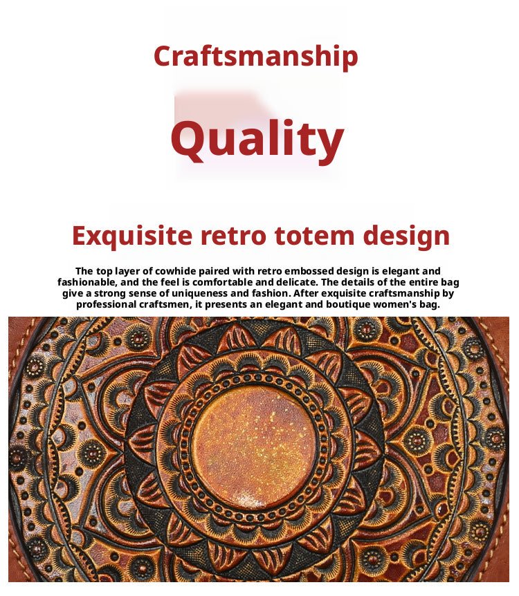 Vintage Full-Grain Leather Handbag for Women – Embossed Totem Top-Handle & Crossbody Bag