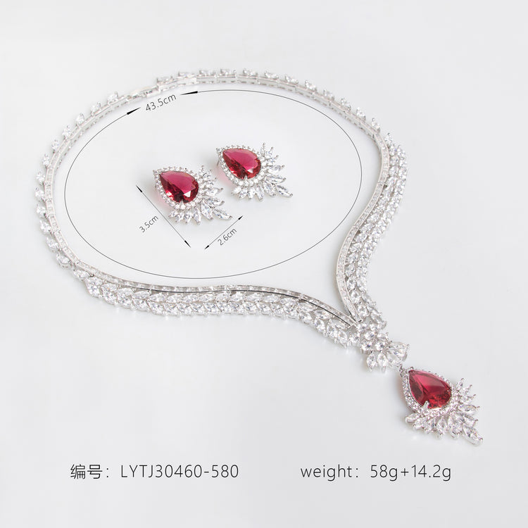 With its luxurious teardrop shape and delicate craftsmanship, it becomes the perfect complement to evening gowns, radiating unparalleled splendor on your special day.Product Features:• Exquisite Cubic Zirconia: Each cubic zirconia sparkles brilliantly, adding a touch of luxury.• Elegant Design: The teardrop gemstones combined with intricate metalwork showcase elegance and nobility.• Perfect Match: Suitable for weddings, dinners, and galas, this set seamlessly blends with your gown.• High-Quality Assurance: Made from premium materials to ensure long-lasting brilliance.Suitable Occasions:This cubic zirconia necklace and earring set is an ideal choice for formal events such as weddings, dinners, and balls, making you the center of attention at every significant moment.