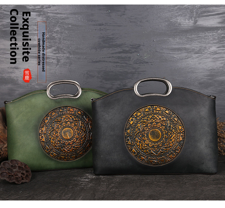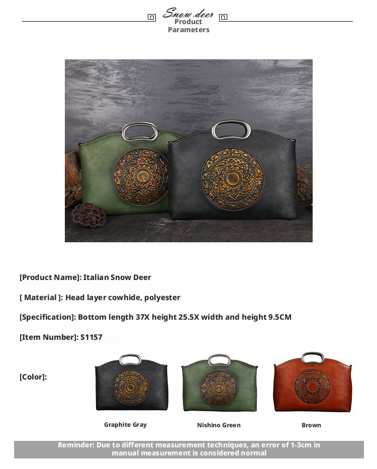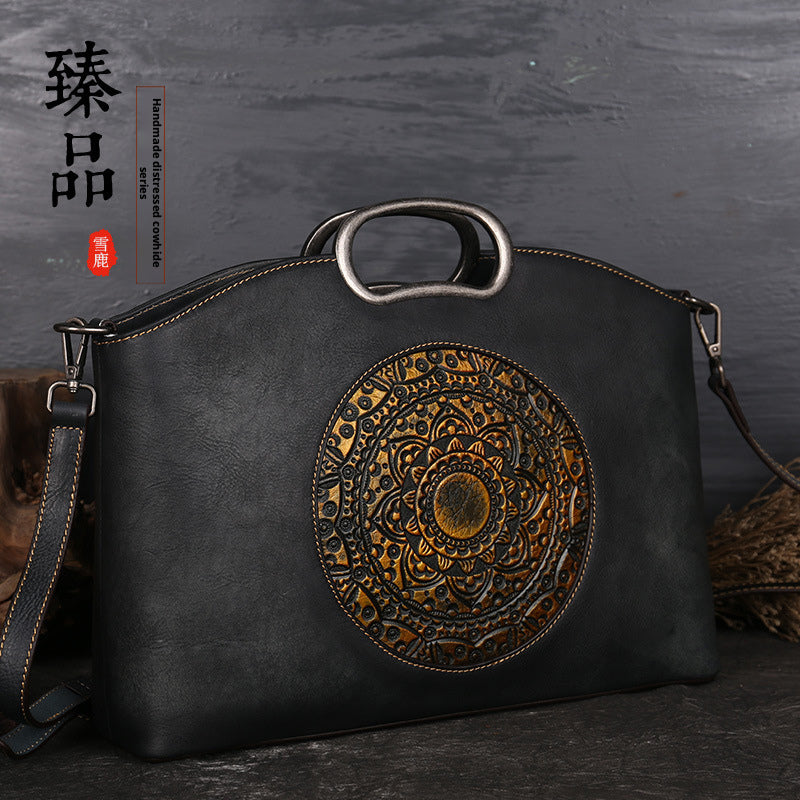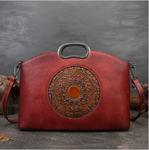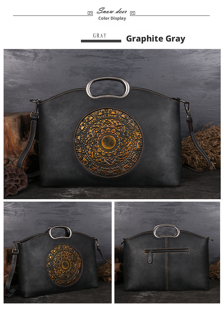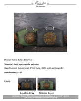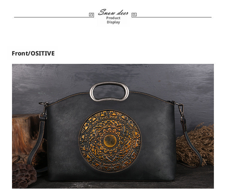 Made from premium full-grain leather, this vintage-inspired tote bag blends artisanal detail with everyday practicality. The bold embossed motif adds character, while the structured silhouette offers generous space for daily essentials. Designed to be worn as a handbag, shoulder bag, or crossbody, it transitions effortlessly from workdays to weekends. Timeless, versatile, and crafted to age beautifully—this is a statement piece you’ll carry for year