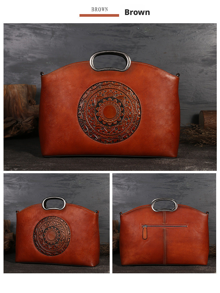 New Women Genuine Leather Tote Bag Top Layer Cowhide Retro Shoulder Crossbody Handbag Fashion Casual Daily Use