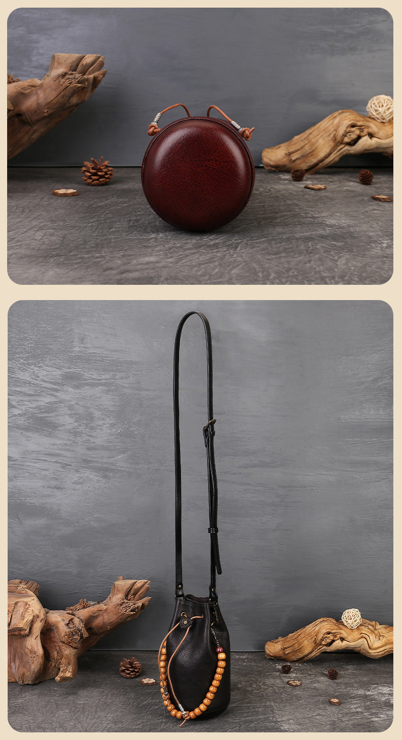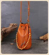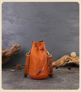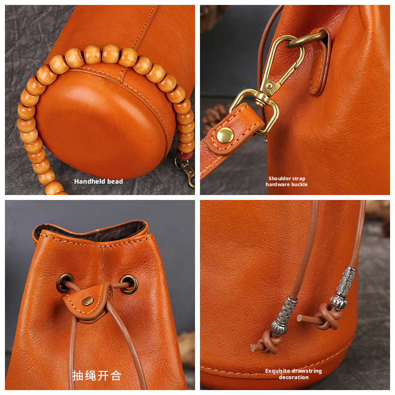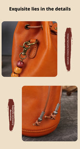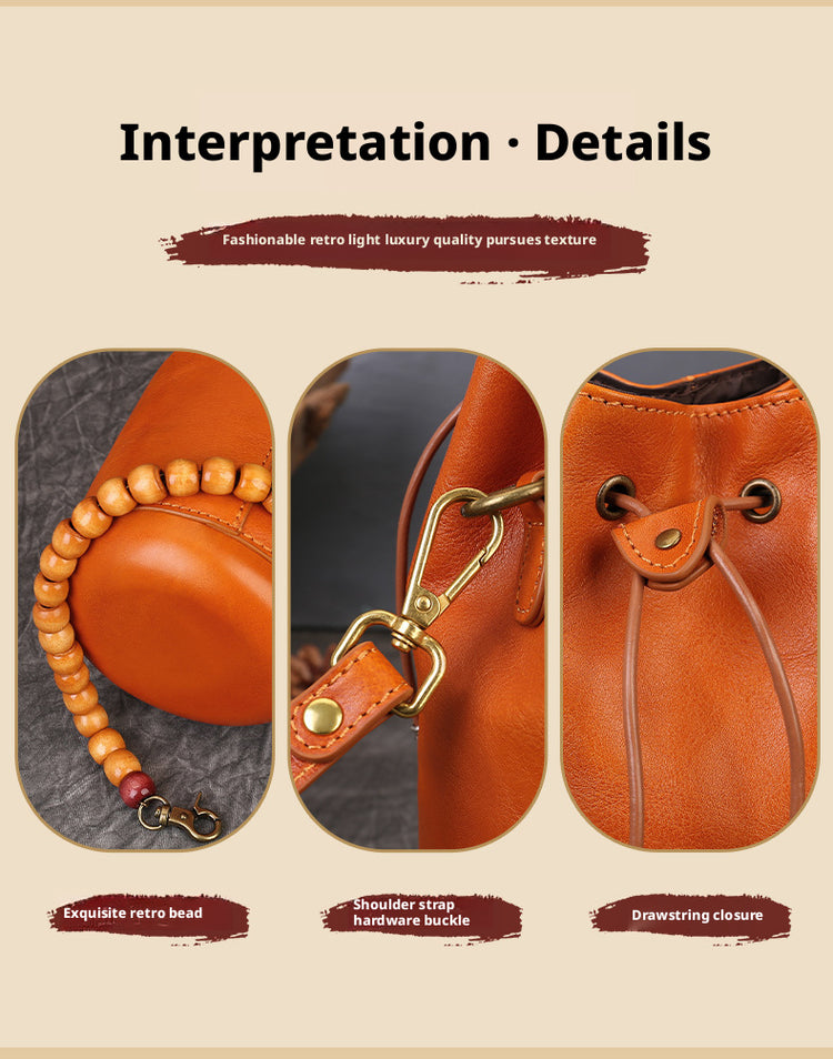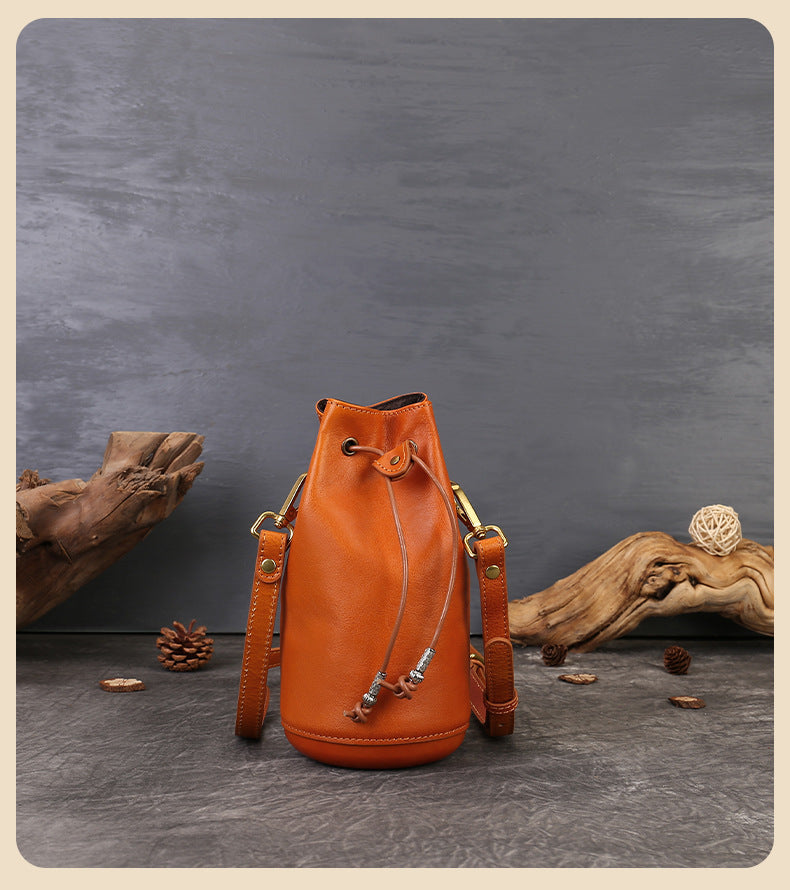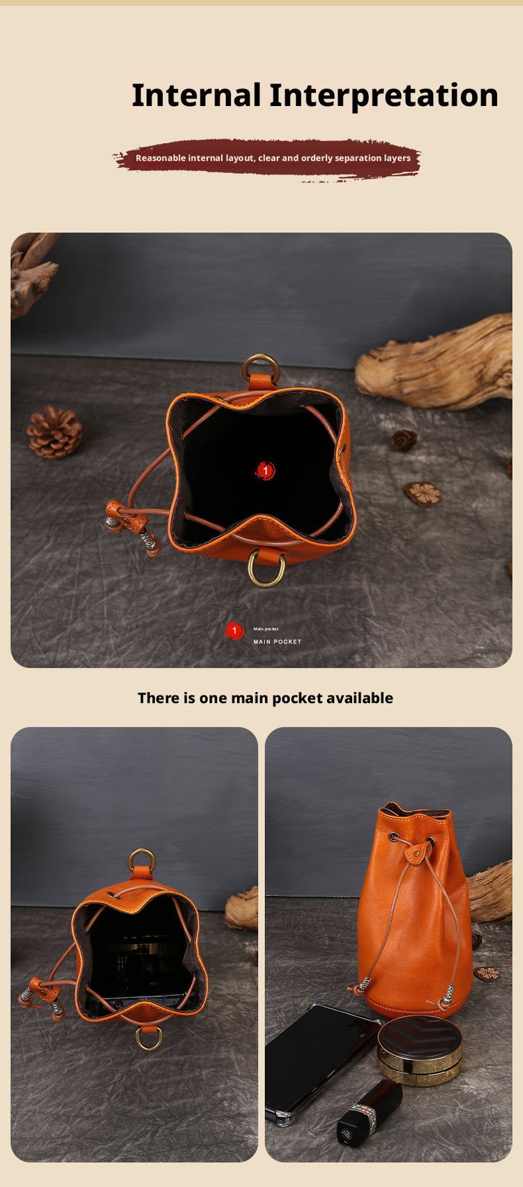 Handmade Vegetable-Tanned Leather Bucket Bag: Timeless Retro Charm for the Modern Minimalist