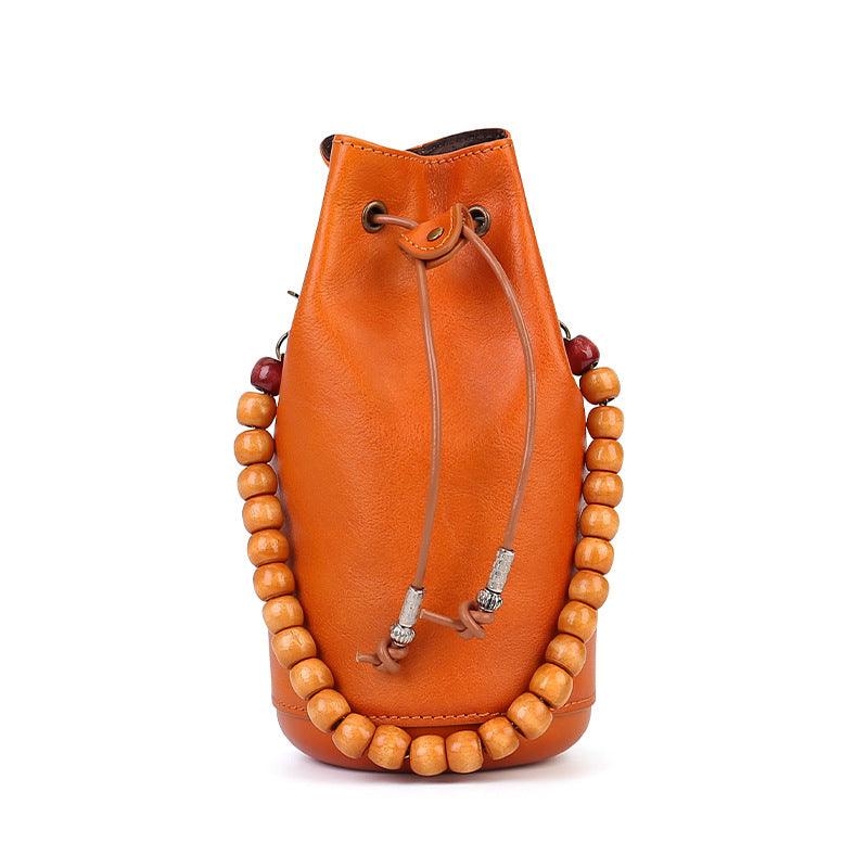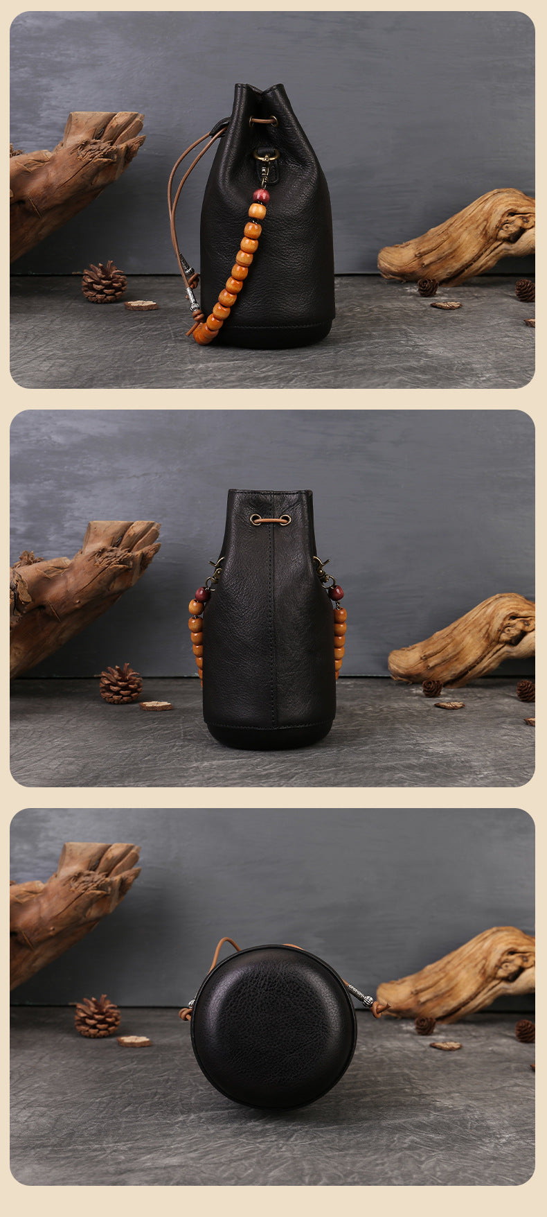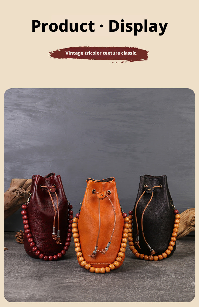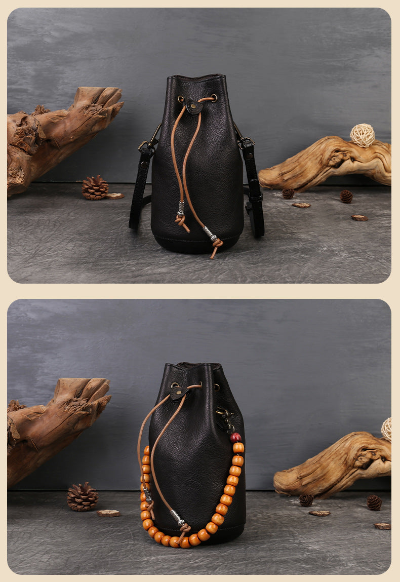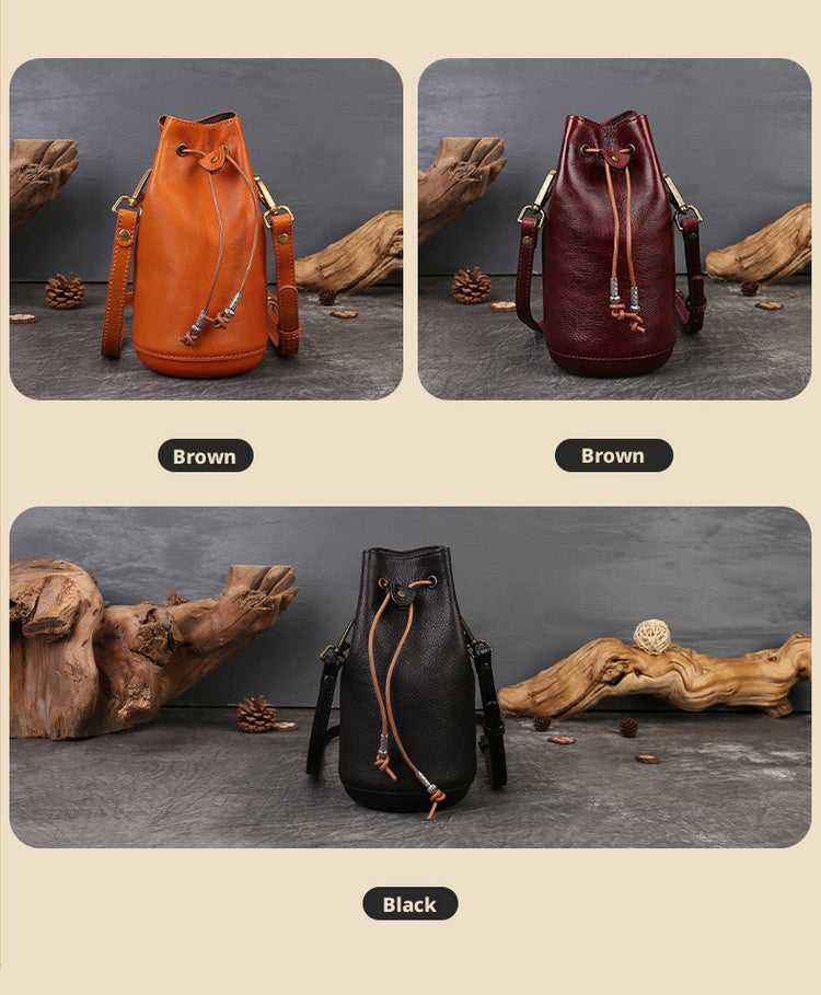 Handmade Vegetable-Tanned Leather Bucket Bag: Timeless Retro Charm for the Modern Minimalist