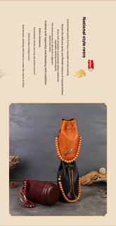 The classic drawstring closure (with a playful wooden bead accent) nods to retro "fortune bag" styling, while the adjustable leather strap lets you switch effortlessly between crossbody, shoulder, or handheld wear. Its compact size (perfect for your phone, keys, and lip balm) doesn’ t skimp on personality: rich warm tan hue, clean stitching, and brass hardware add subtle, elevated details that feel both lived-in and luxe.