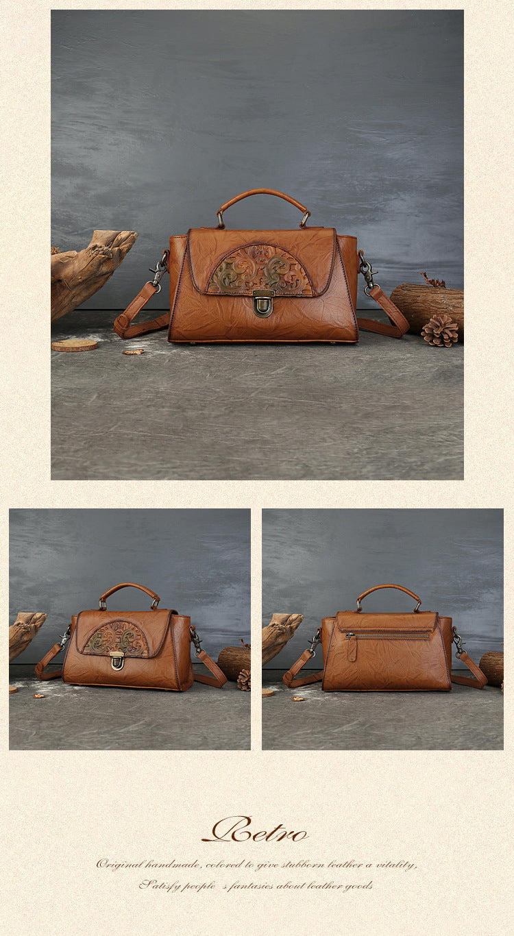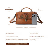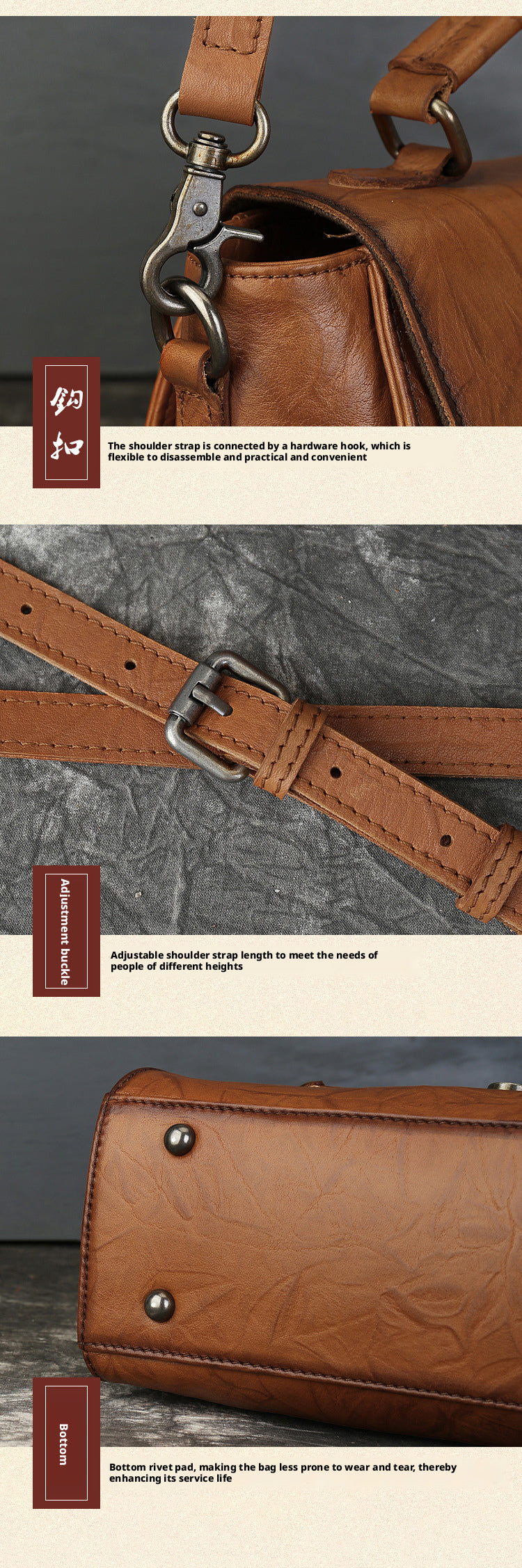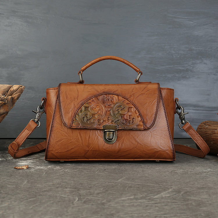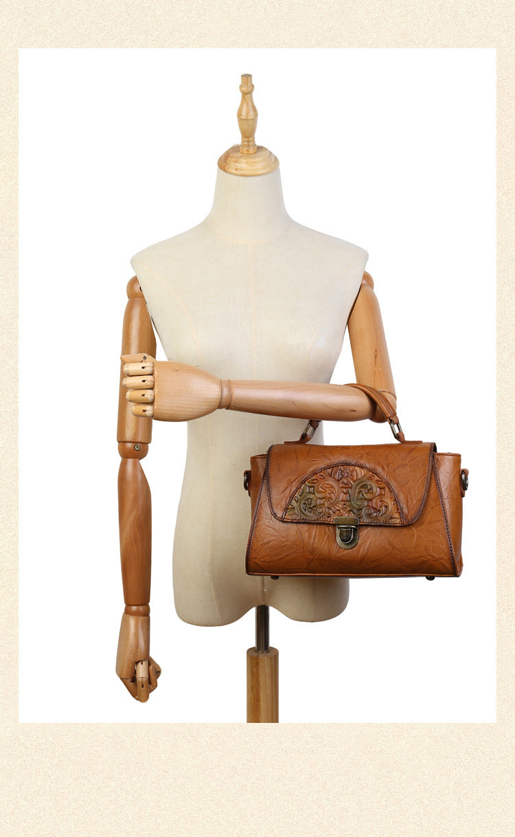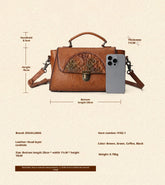 Vintage Top Layer Cow Leather Embossed Pattern Cross Body Tote Bag Distressed Buckle Mini Square Bag
