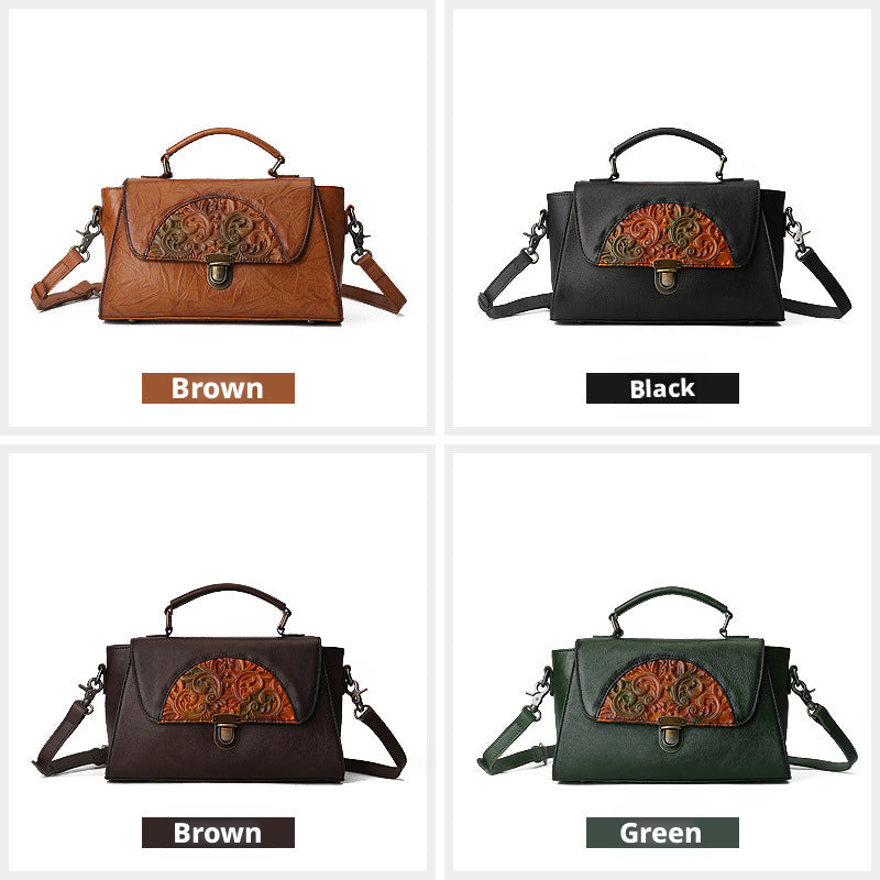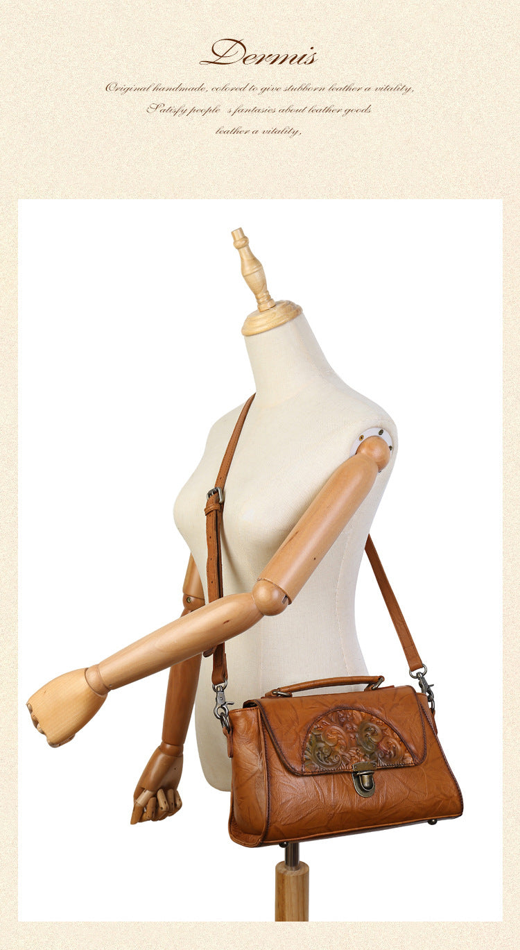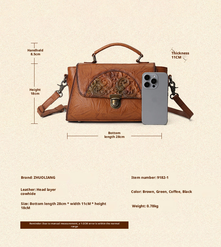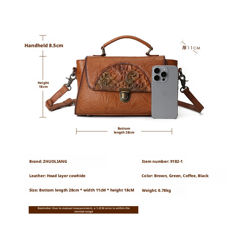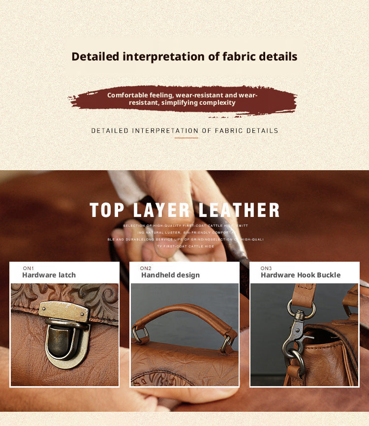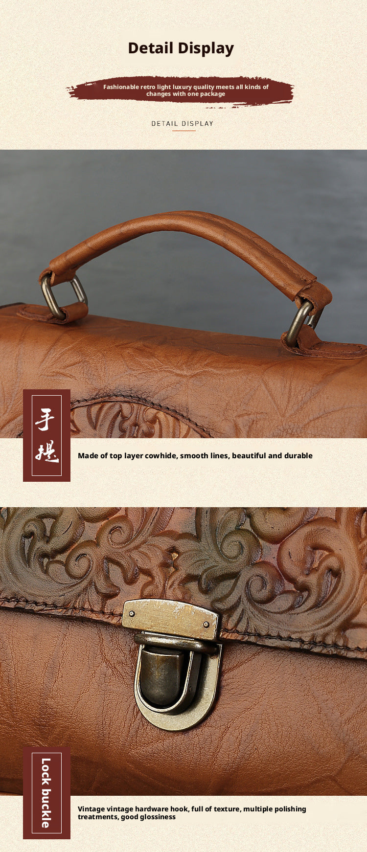 Vintage Top Layer Cow Leather Embossed Pattern Cross Body Tote Bag Distressed Buckle Mini Square Bag