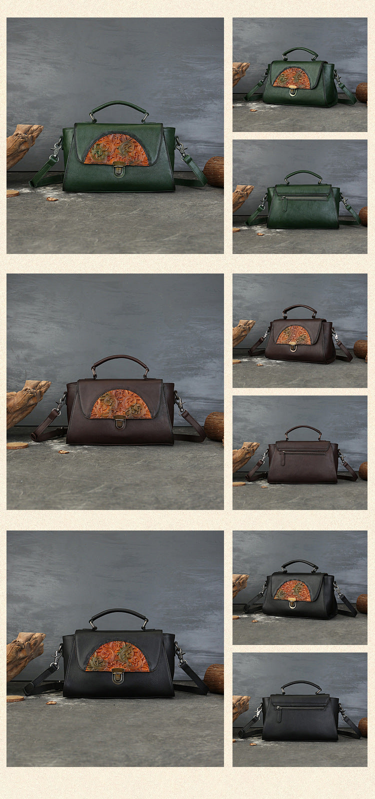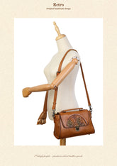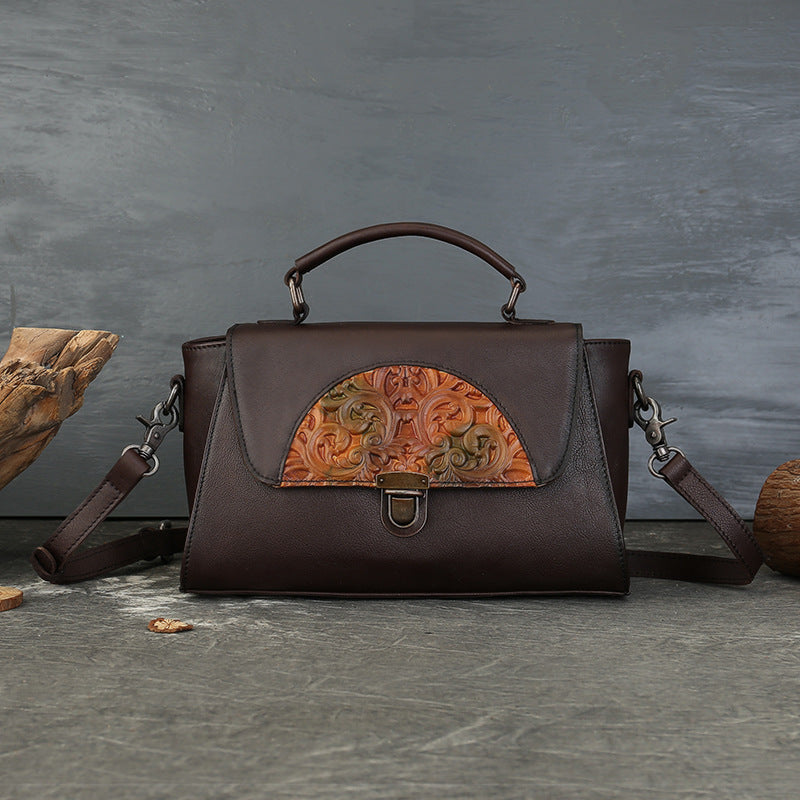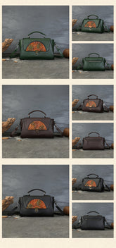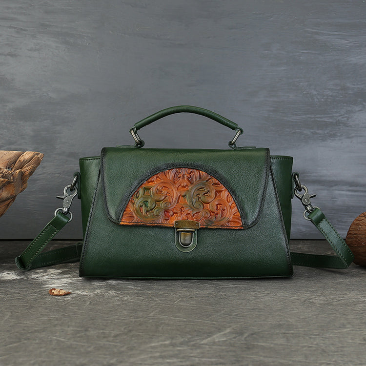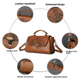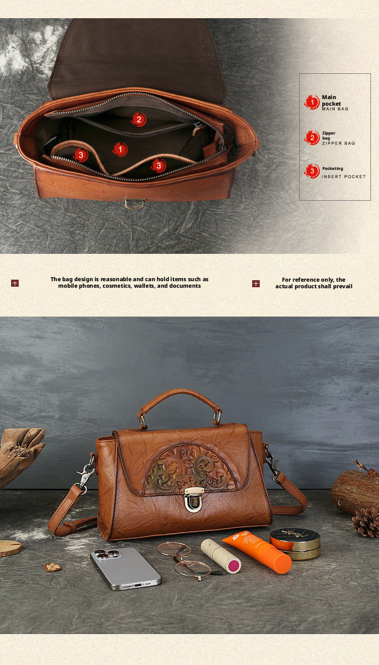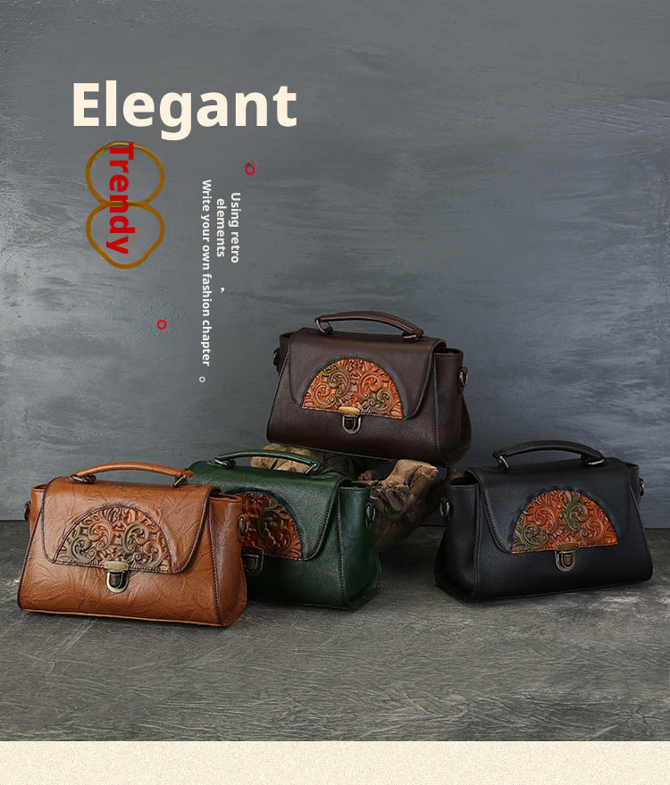 Vintage Top Layer Cow Leather Embossed Pattern Cross Body Tote Bag Distressed Buckle Mini Square Bag