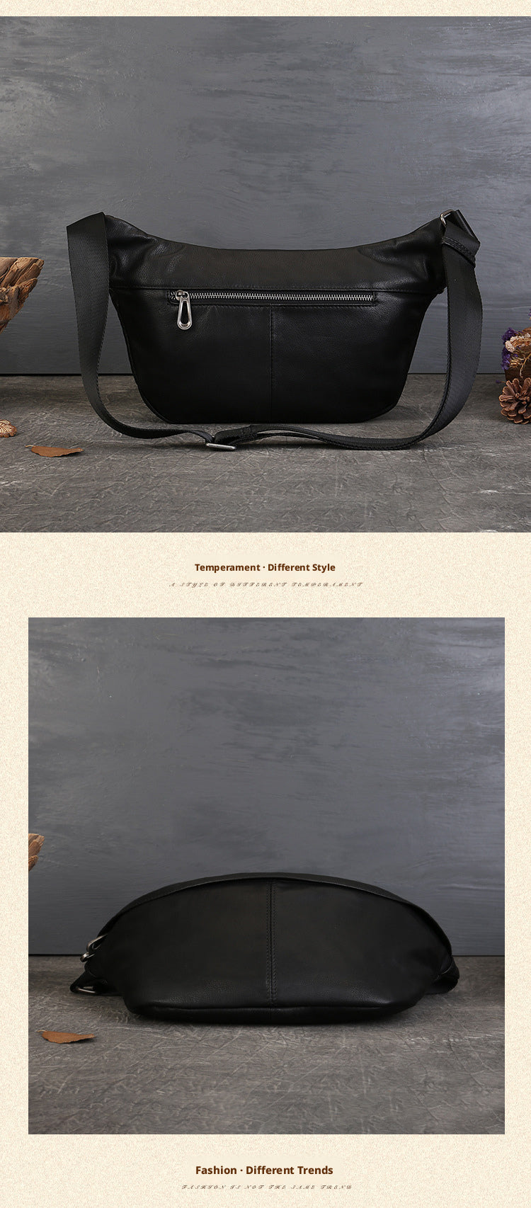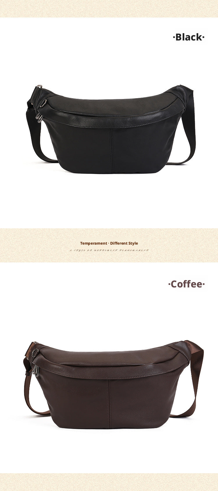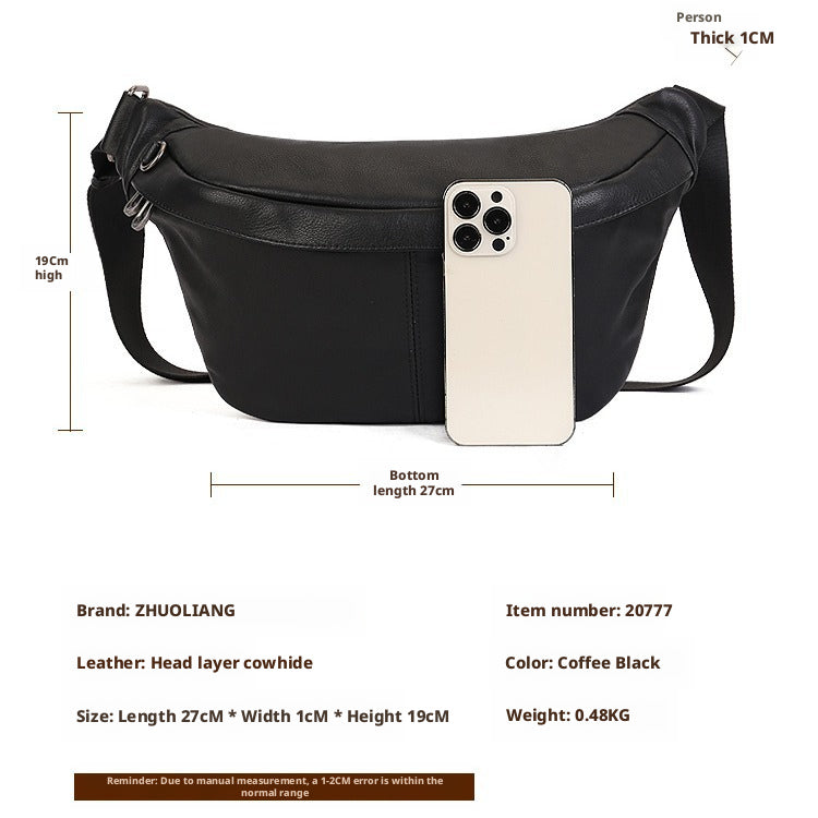 Meet your new go-to: a top-grain leather saddle bag that balances retro charm with modern minimalism.Its smooth, solid-color design (Black/Coffee) exudes understated elegance—perfect for elevating casual fits or adding polish to daily errands.