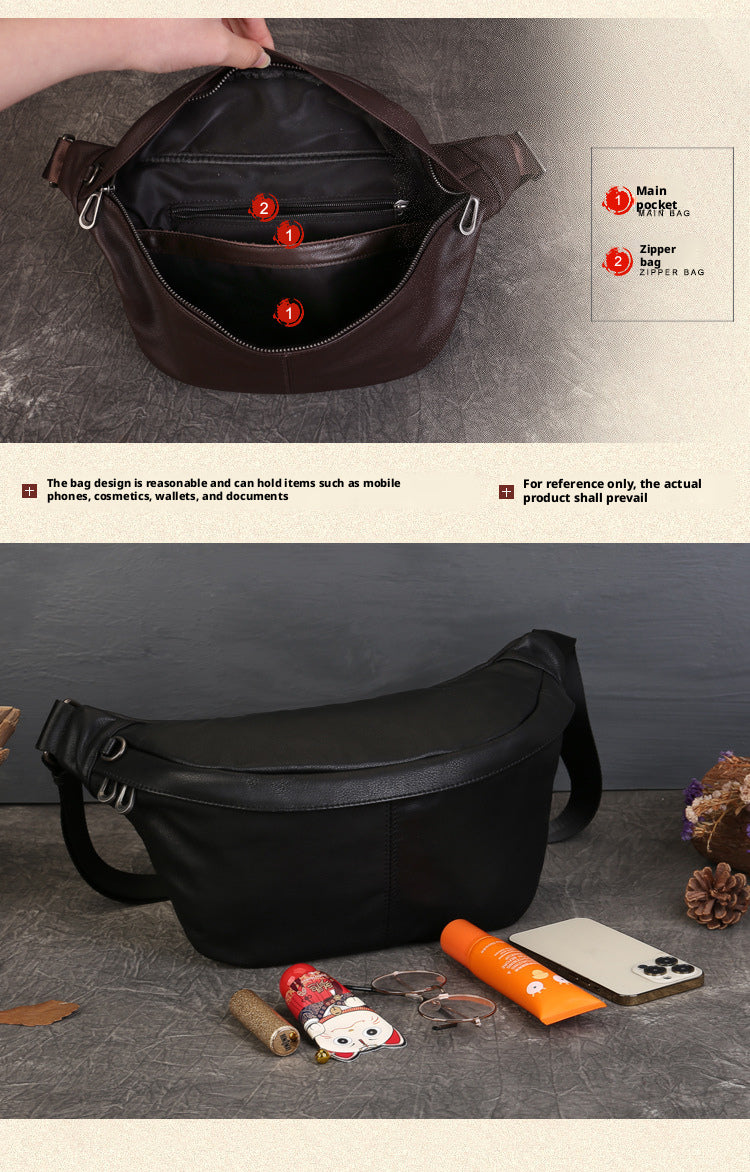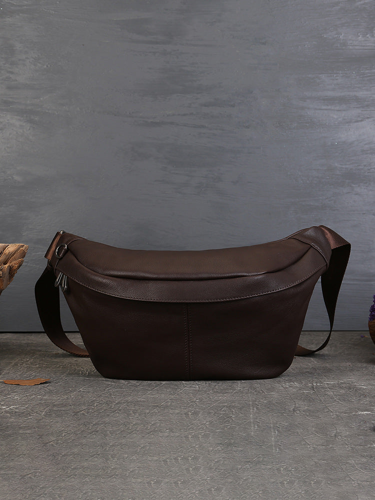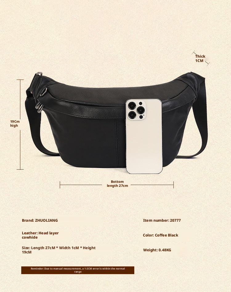 New Top Layer Cowhide Casual Chest Bag Fashion Versatile High-end Small Saddle Bag Solid Color Crossbody Shoulder Bag for Women