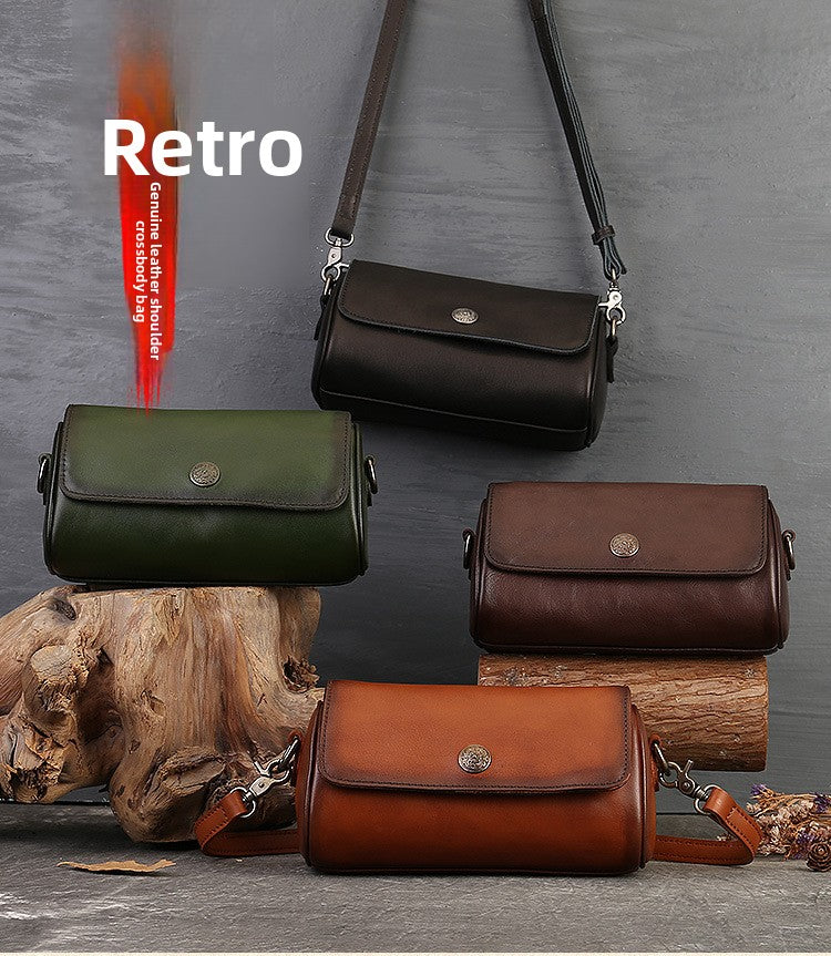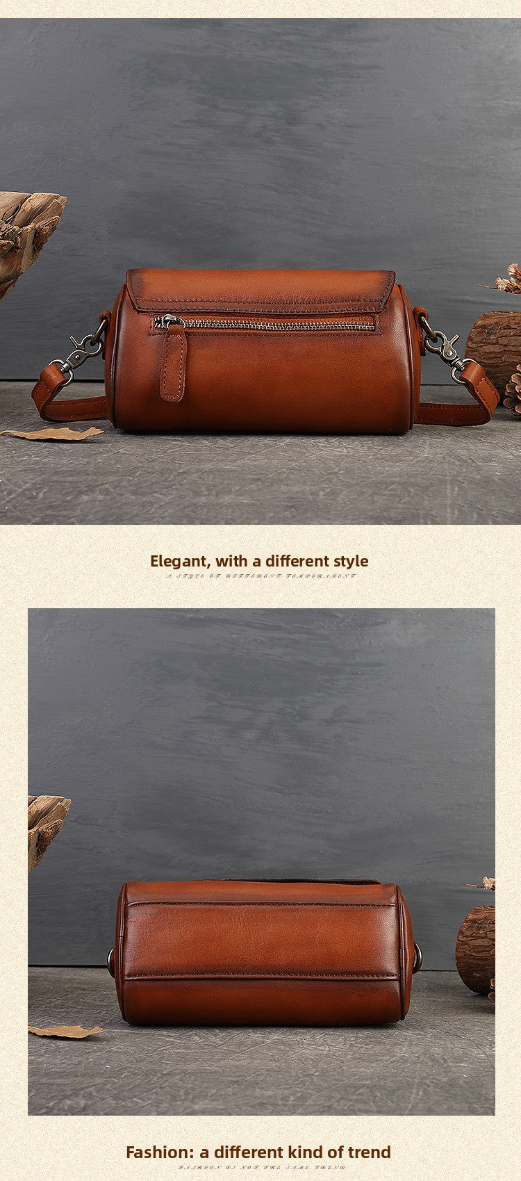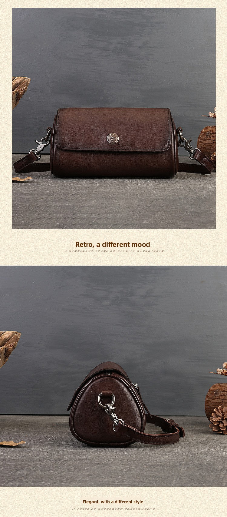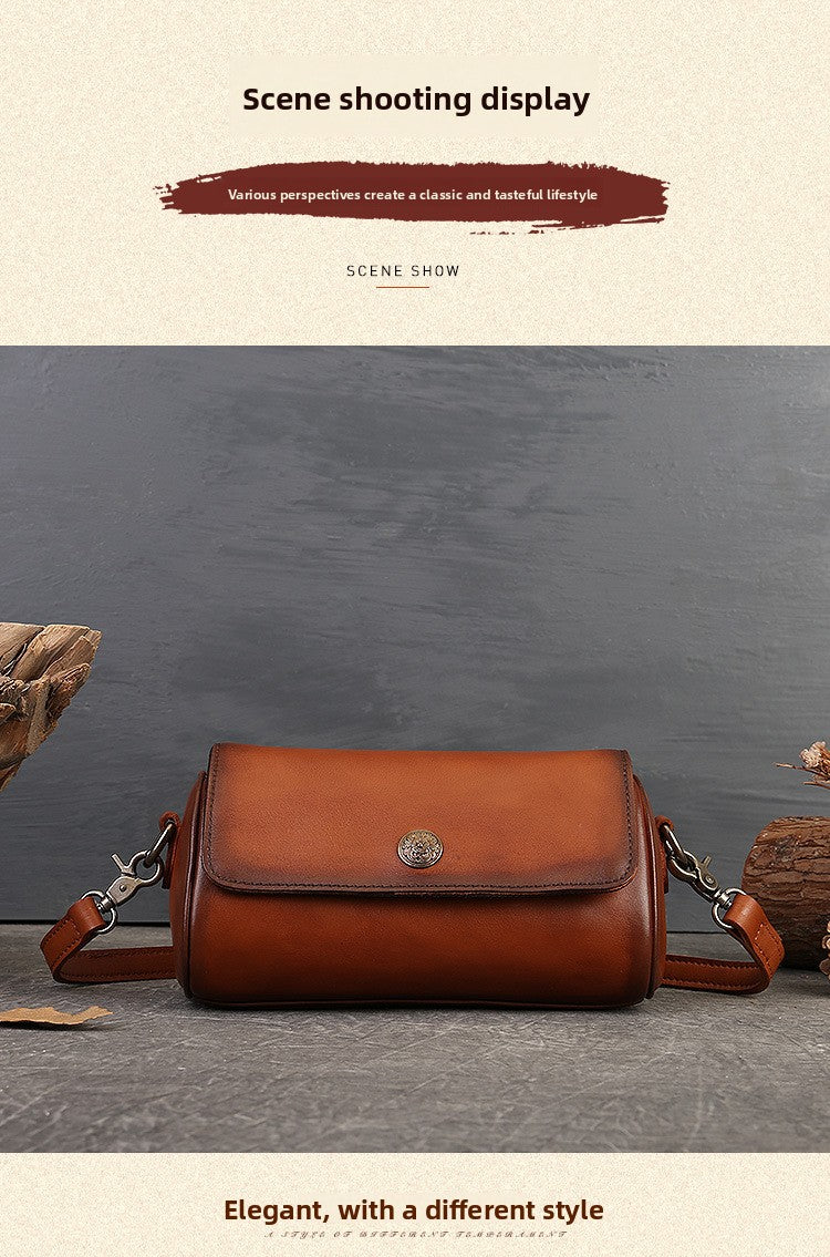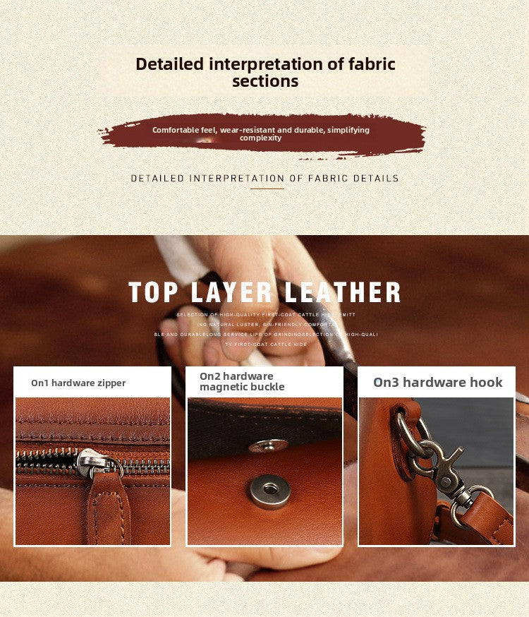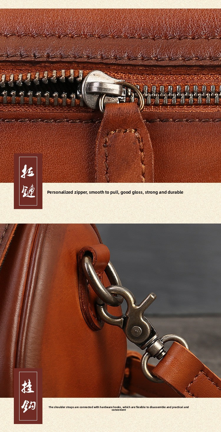 Crafted from premium full-grain leather, this vintage-inspired bag brings together understated elegance and everyday functionality.Its smooth, naturally textured surface develops a rich patina over time, making each piece truly one of a kind.