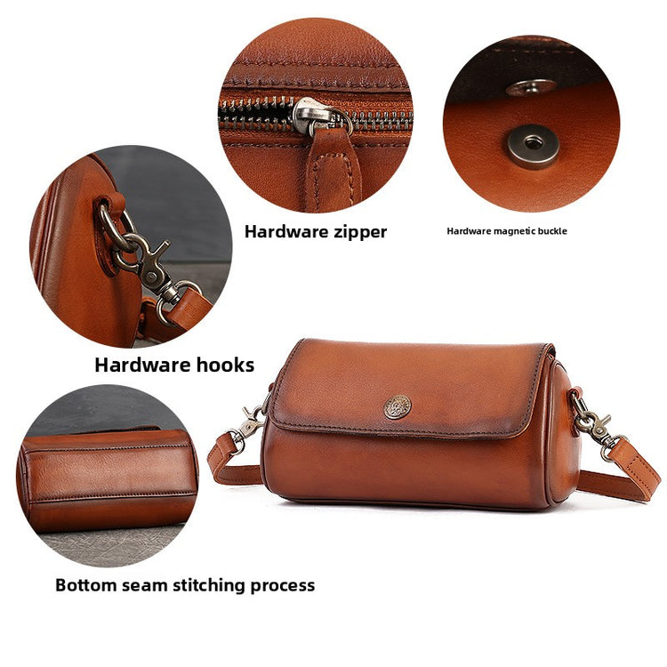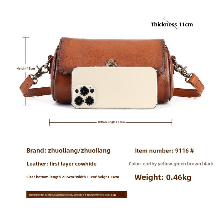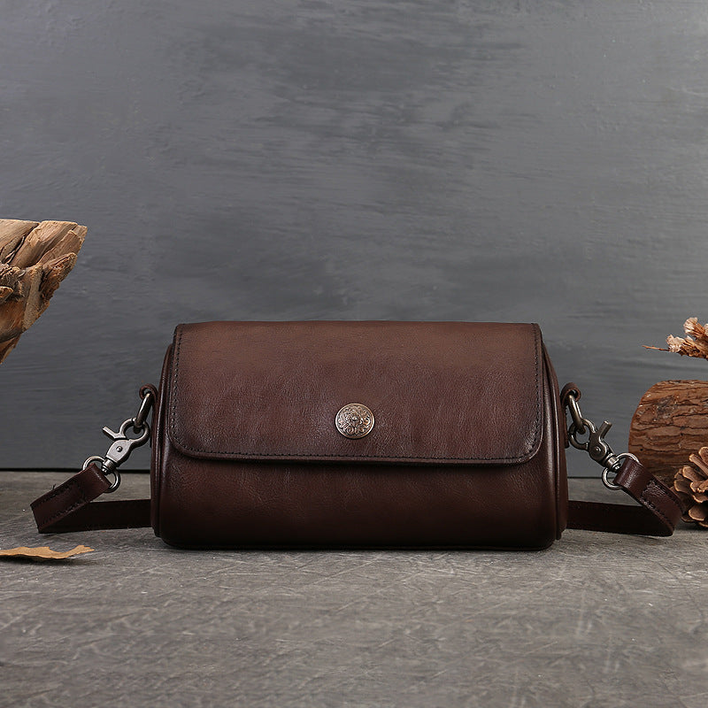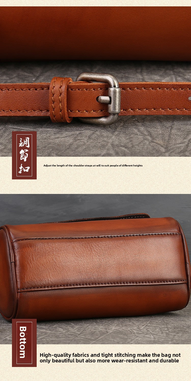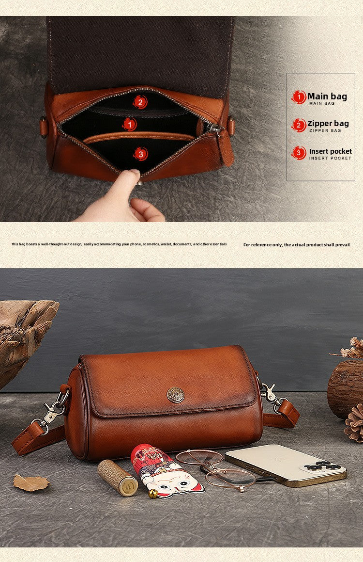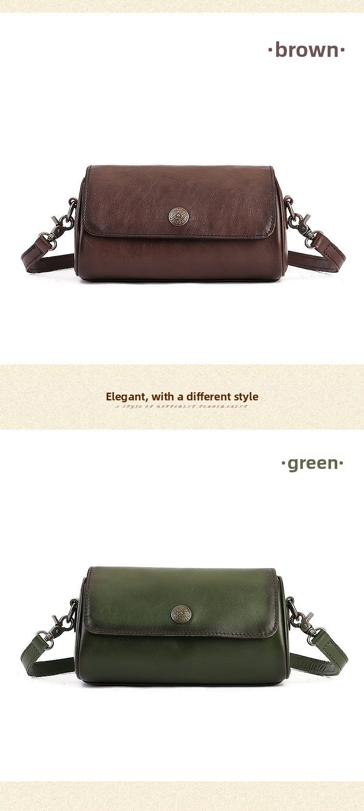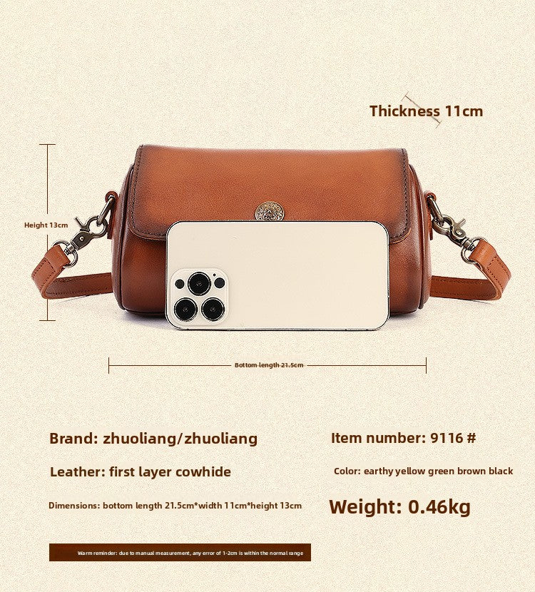 Crafted from premium full-grain leather, this vintage-inspired bag brings together understated elegance and everyday functionality.Its smooth, naturally textured surface develops a rich patina over time, making each piece truly one of a kind.